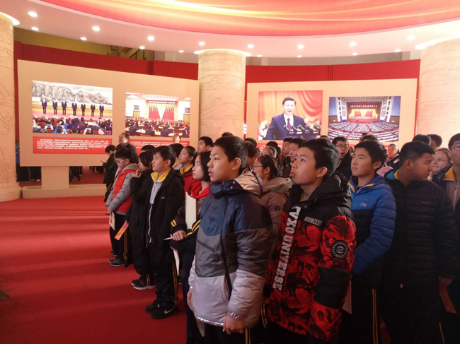 图为次渠中学党员教师与学生参观大型成就展现场照片 卢志平/摄